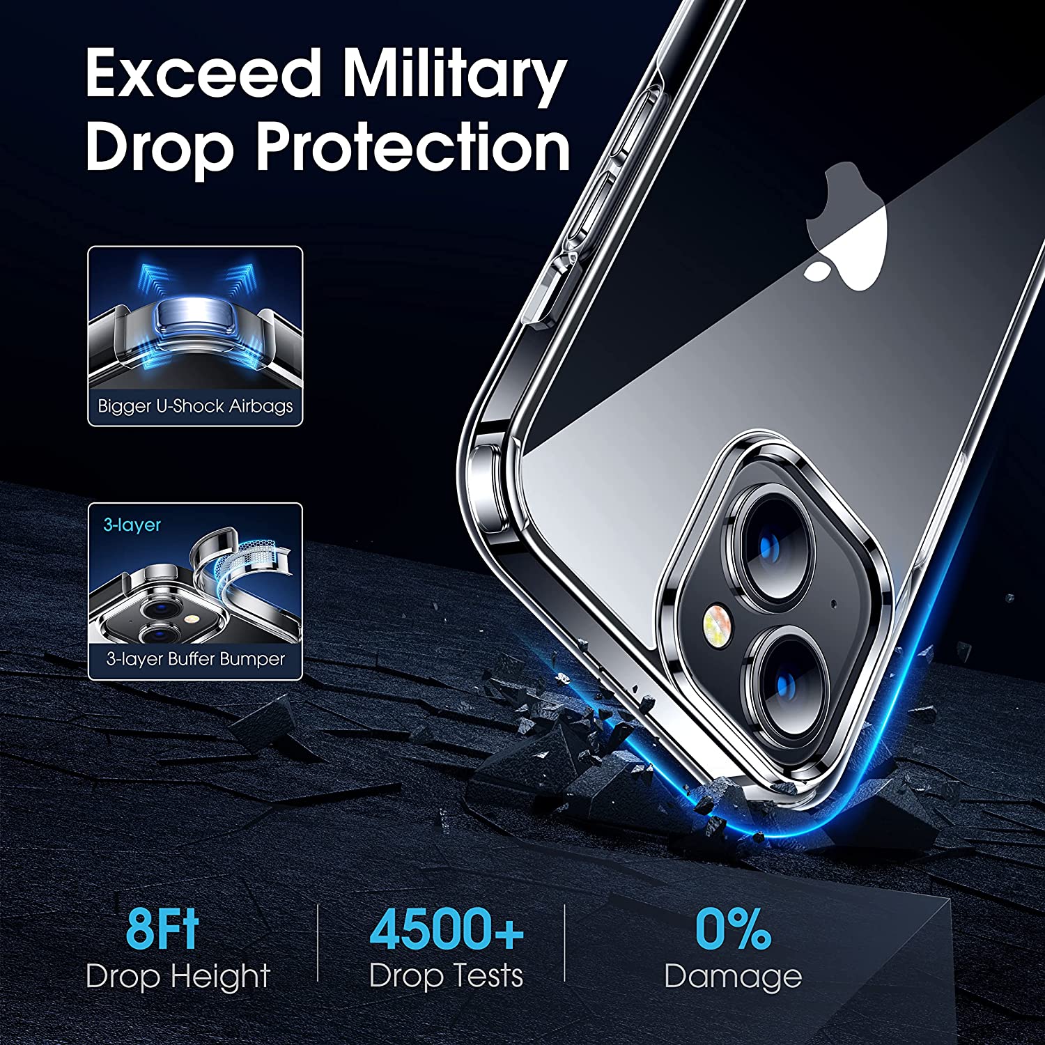 CASEKOO Transparent Crystal for iPhone 14 Case and iPhone 13 Case, [No Yellowing] [Military Grade Drop Protection] Shockproof Protective Phone Case 6.1 Inch 2022 (Clear)
