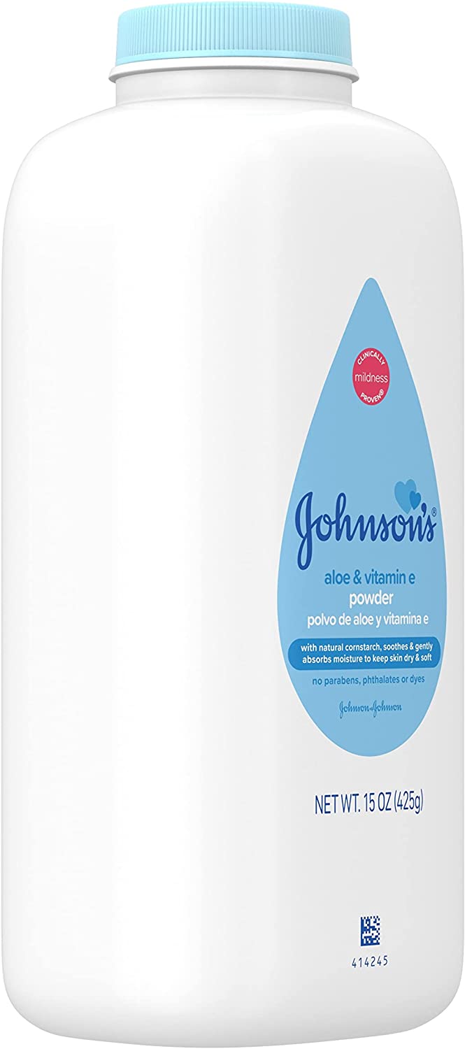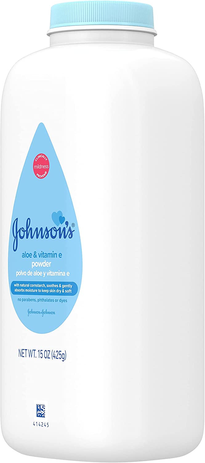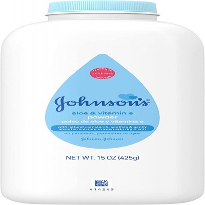 Johnsons Baby Powder, Natural Corn Starch with Aloe Vera and Vitamin E for Delicate Skin, Hypoallergenic and Free of Parabens, Phthalates, and Dyes for Mild Baby Skin Care, 15 Ounce (Pack of 2)
