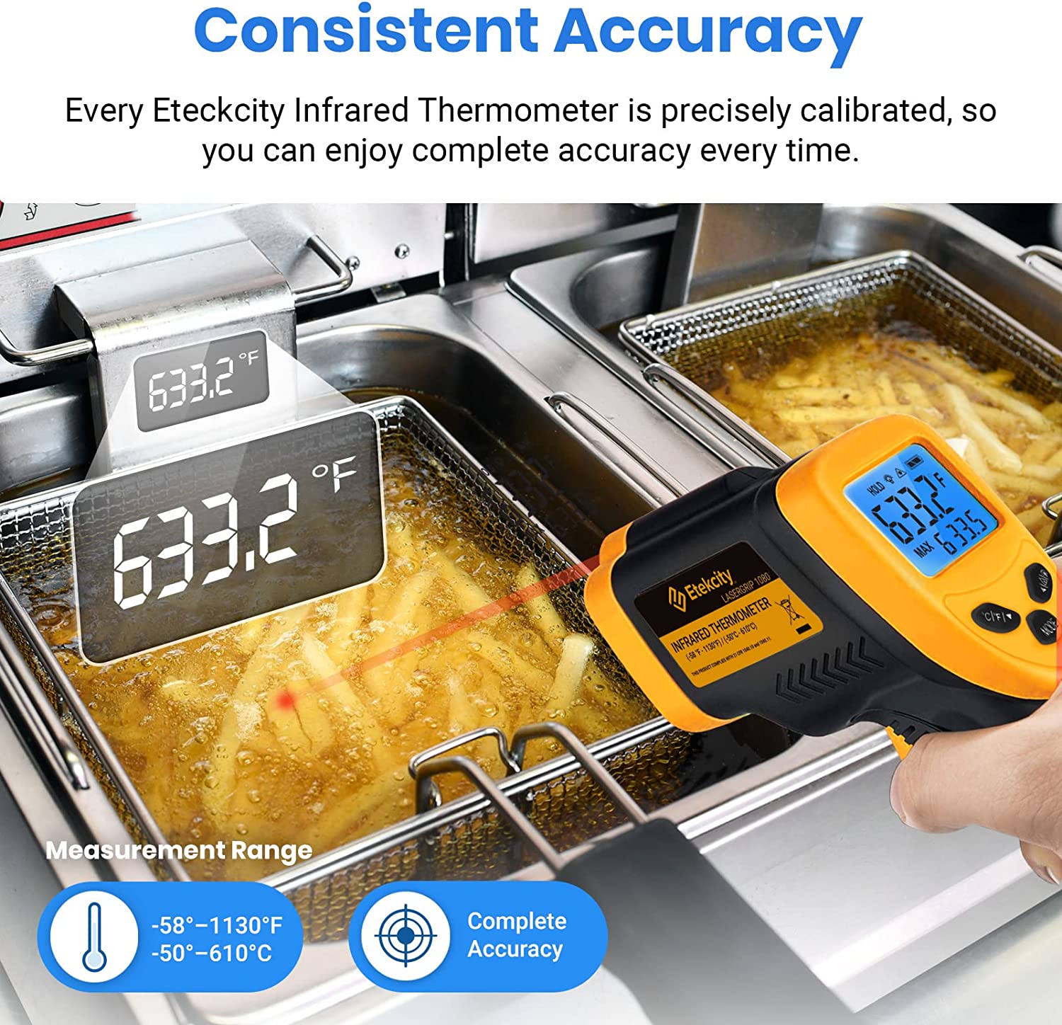 Etekcity Infrared Thermometer 1080, Hot Temperature Temperature Gun for Cooking, Laser Infrared Surface Tool for Pizza Ovens, Meat, Frying Pans, Grills, HVAC, Engines, Accessories, -58°F to 1130°F, Yellow