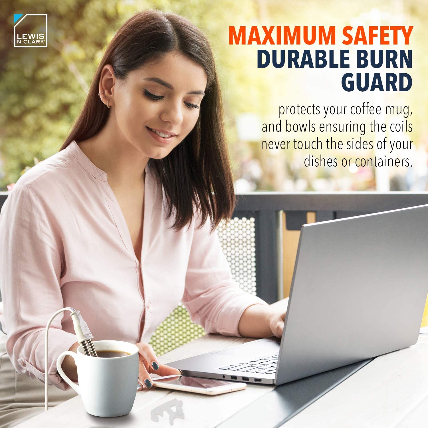 Lewis N. Portable Immersion Water Heater + Electric Kettle Replacement for Coffee, Tea + Hot Chocolate, Camping, Travel + Office with Travel Adapter, White, 120/240v