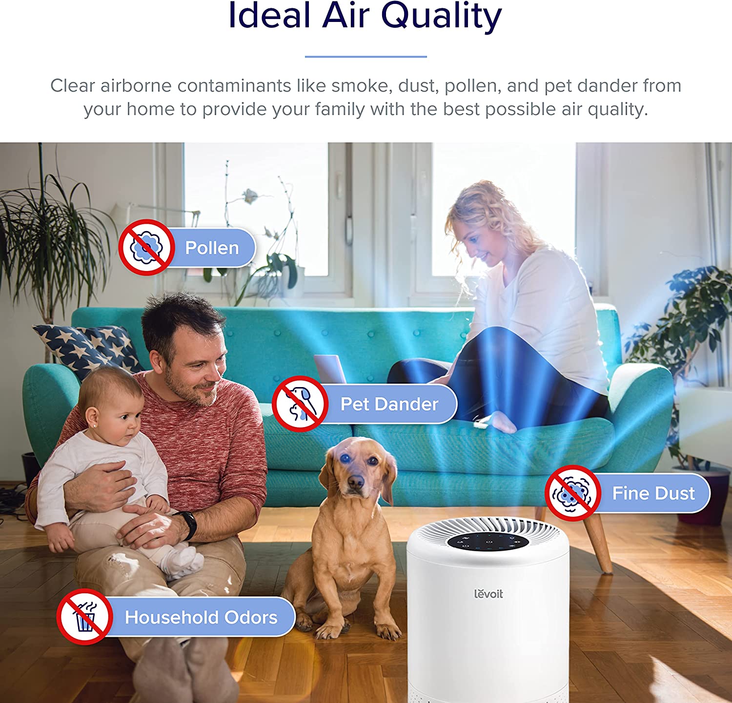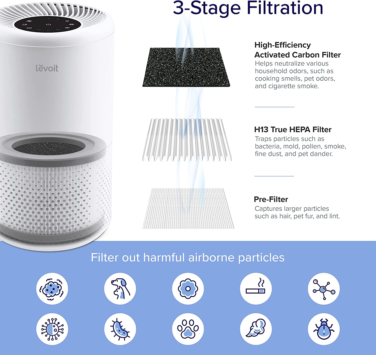 LEVOIT Air Purifier for Household Allergies and Pet Hair, H13 True HEPA Filter, Silent Filtration System for Bedrooms, Removes Wildfire Smoke Smells Dust Mildew, Night Light and Timer, Vista 200, White