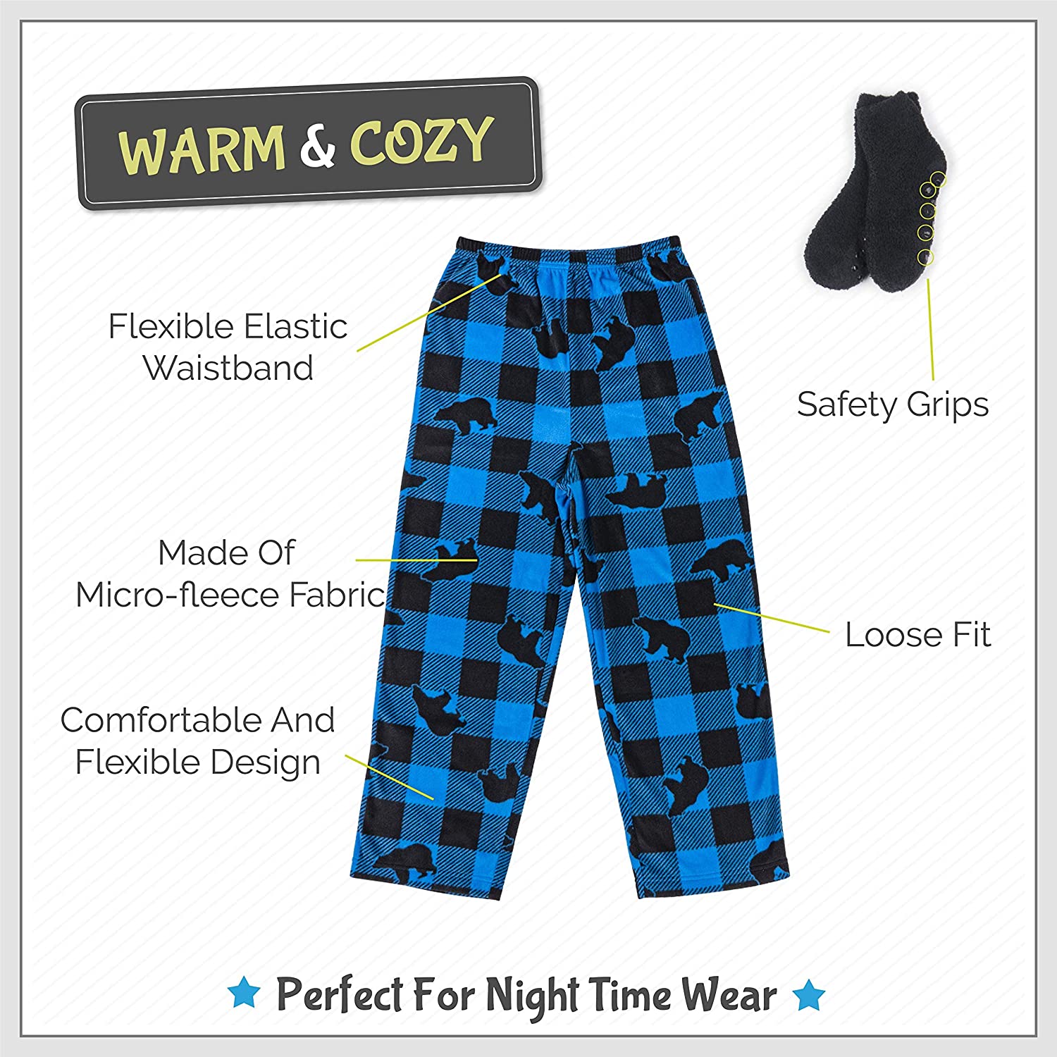 Mad Dog Concepts Boys' Pajamas Super Soft Microfleece 2-Pack Pajama Pants + Slipper Socks.