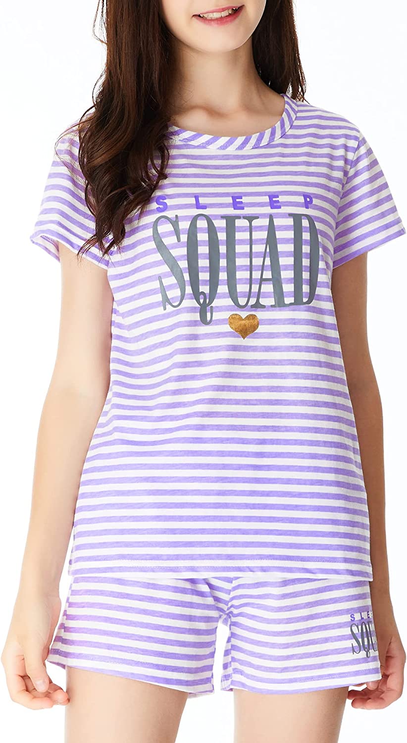 Girls Summer Pajamas - Striped and Glittered Hearts PJS Pal Cute Pajama Set Big Kids Size 6-16