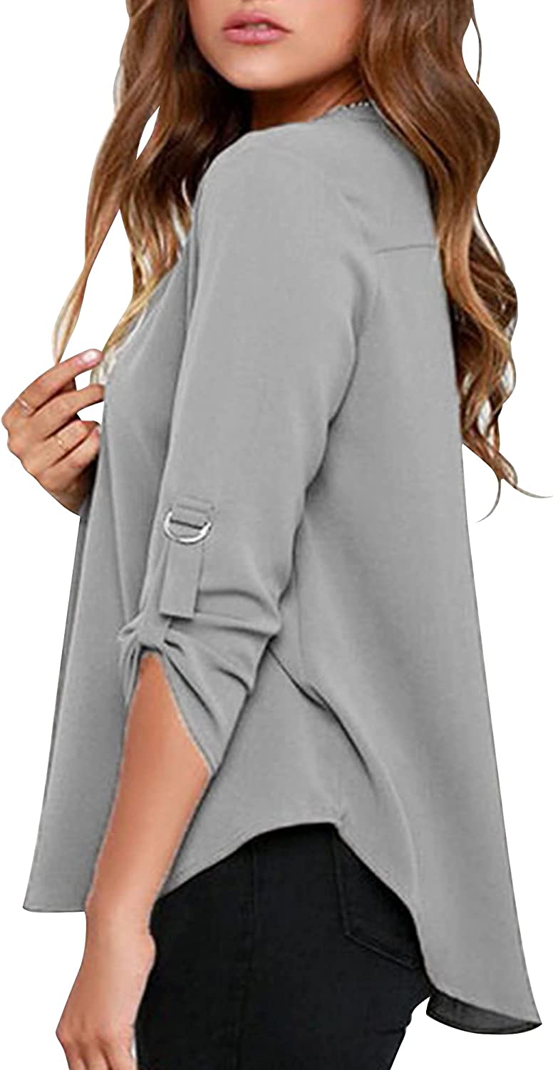 roswear Women's Business Casual V-Neck Flap Sleeve Work Shirt Blouse