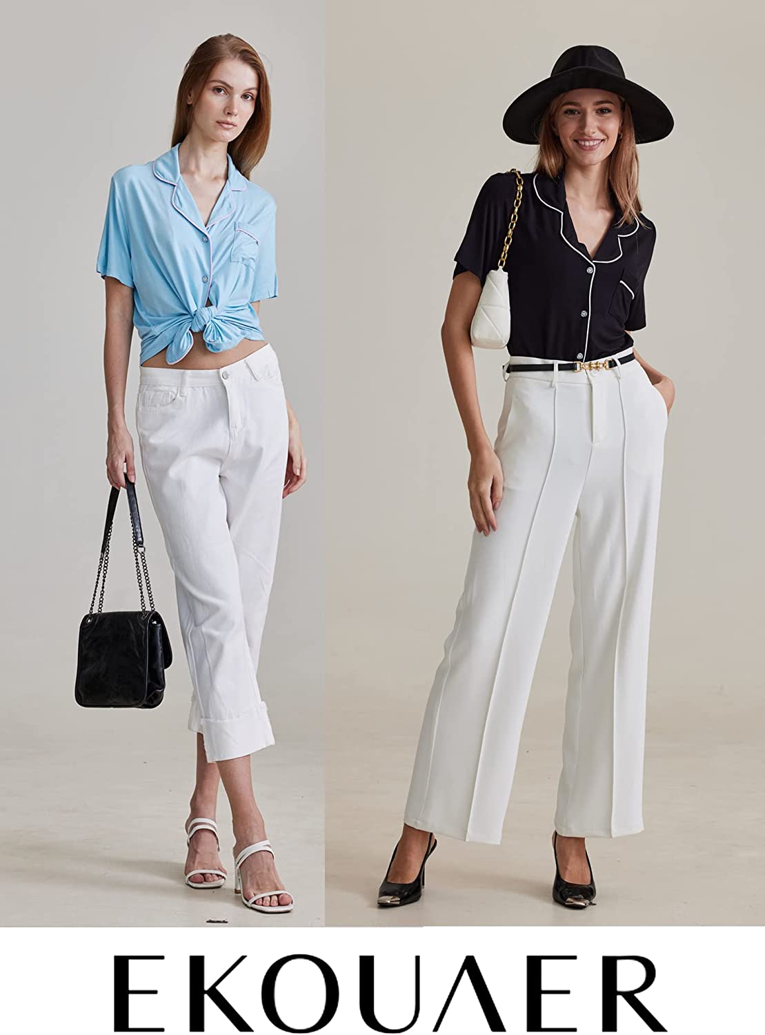 Ekouaer Pajamas Women's Short Sleeve Pajamas Buttoned Homewear Soft Pajama Shorts Set