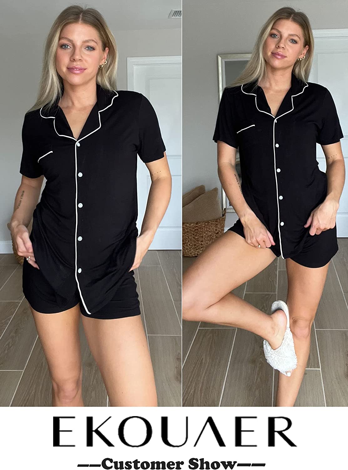 Ekouaer Pajamas Women's Short Sleeve Pajamas Buttoned Homewear Soft Pajama Shorts Set $171.0 |