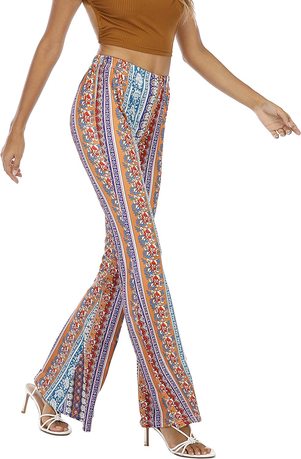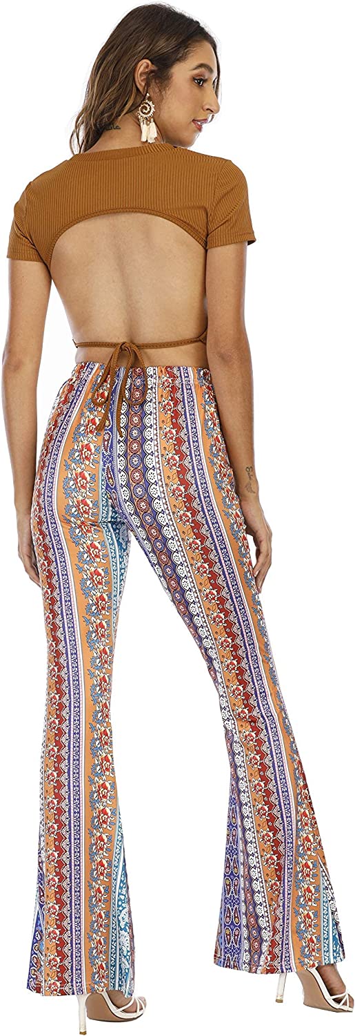 WSPLYSPJY Women's Printed Stretch Flare Pants Flared Pants Trousers