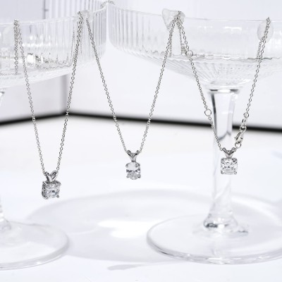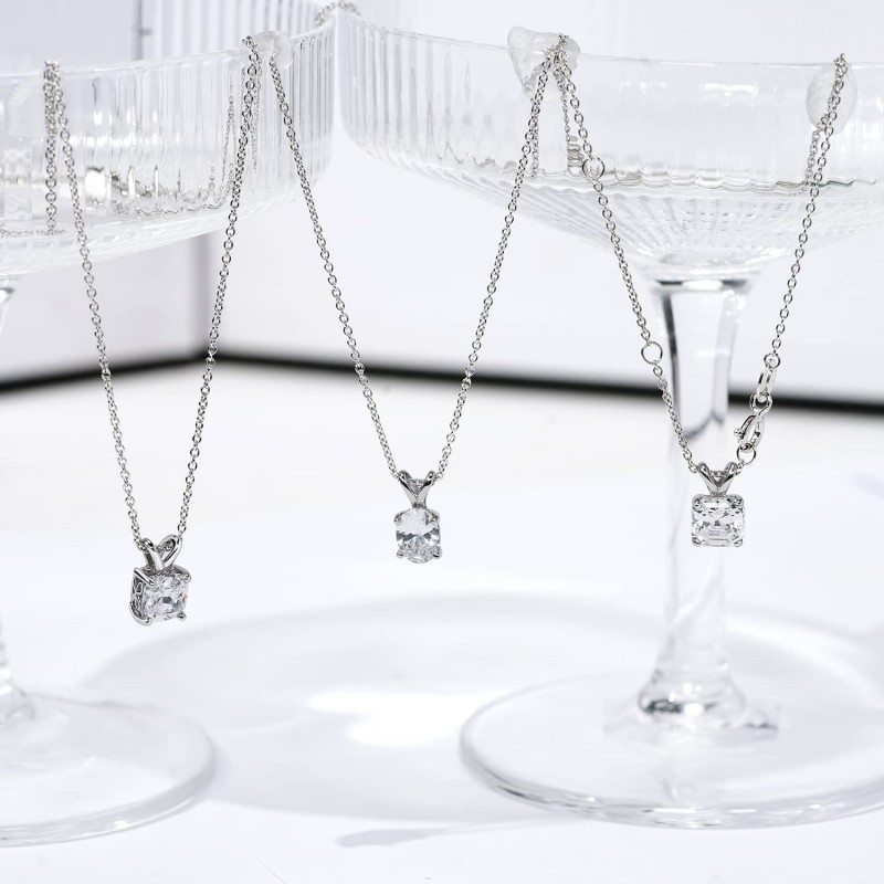 Argos pendant necklace in platinum-plated sterling silver with a square-cut single stone, made of Infinite Element zirconia