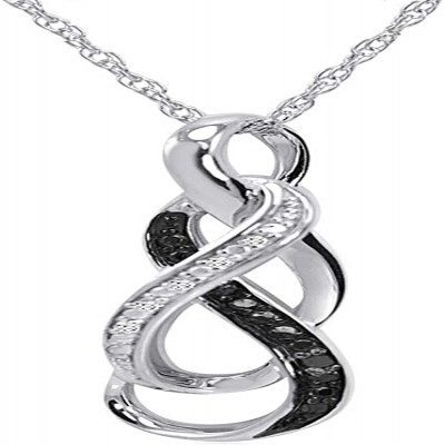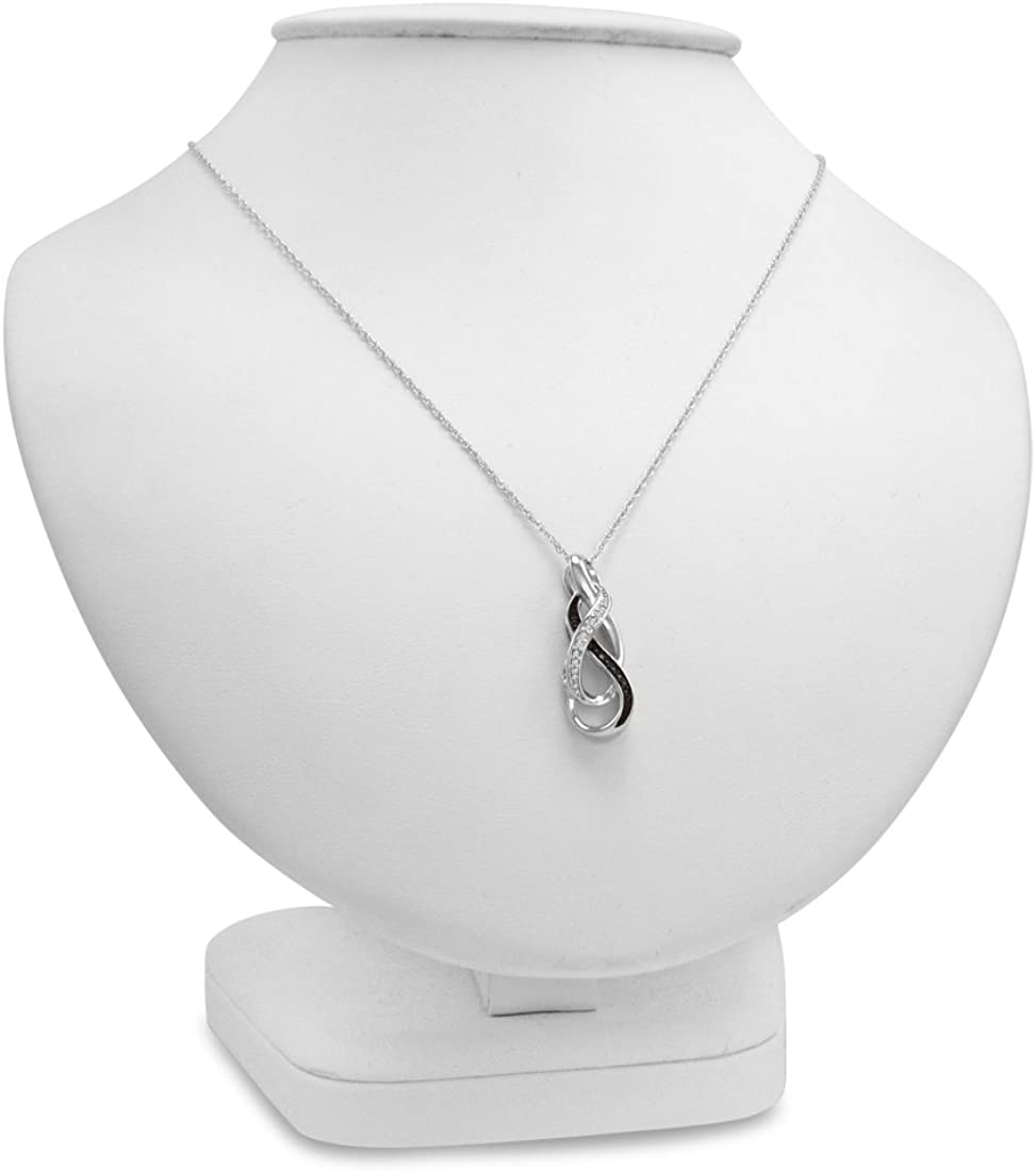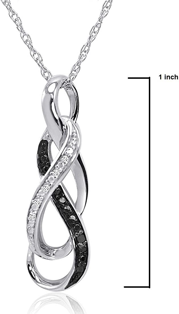 Women's Sterling Silver Black and White Diamond Infinity Pendant Necklace | Genuine Sterling Silver with Genuine Diamonds - On a 18 Inch Sterling Silver Chain