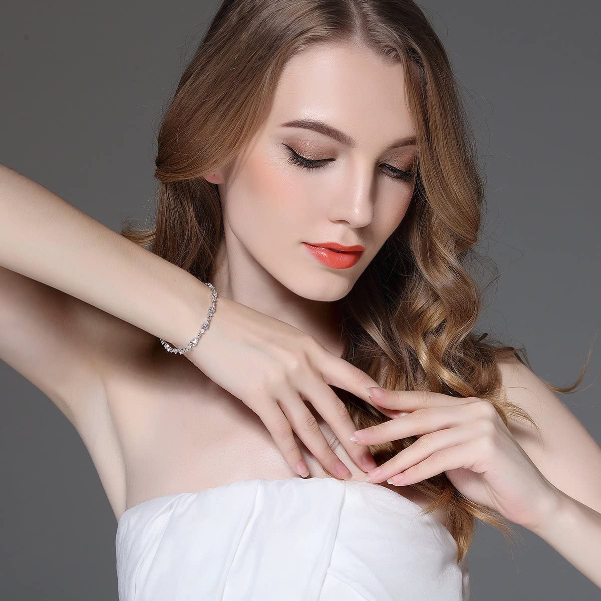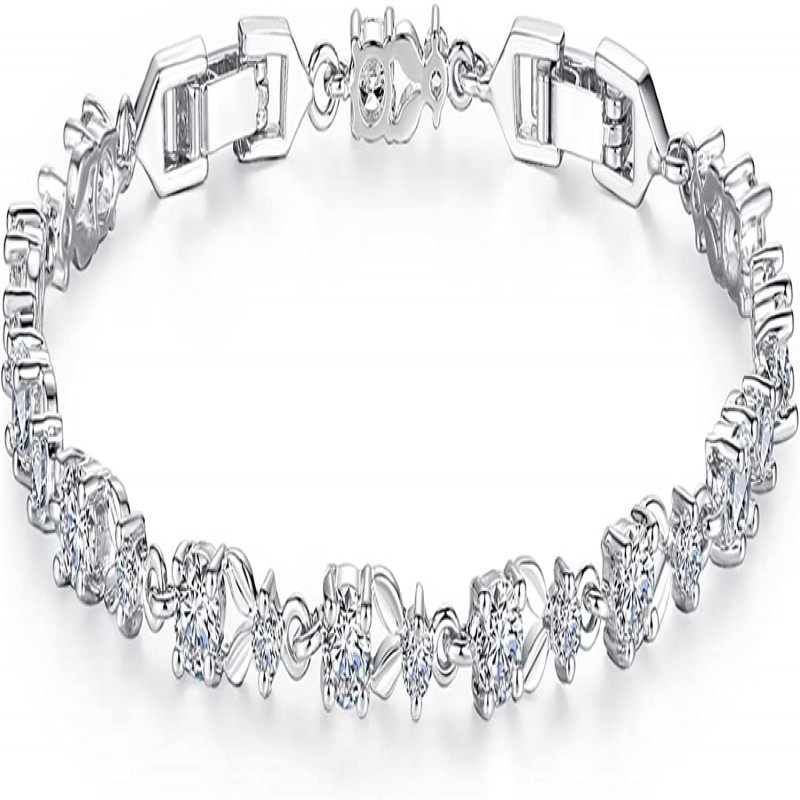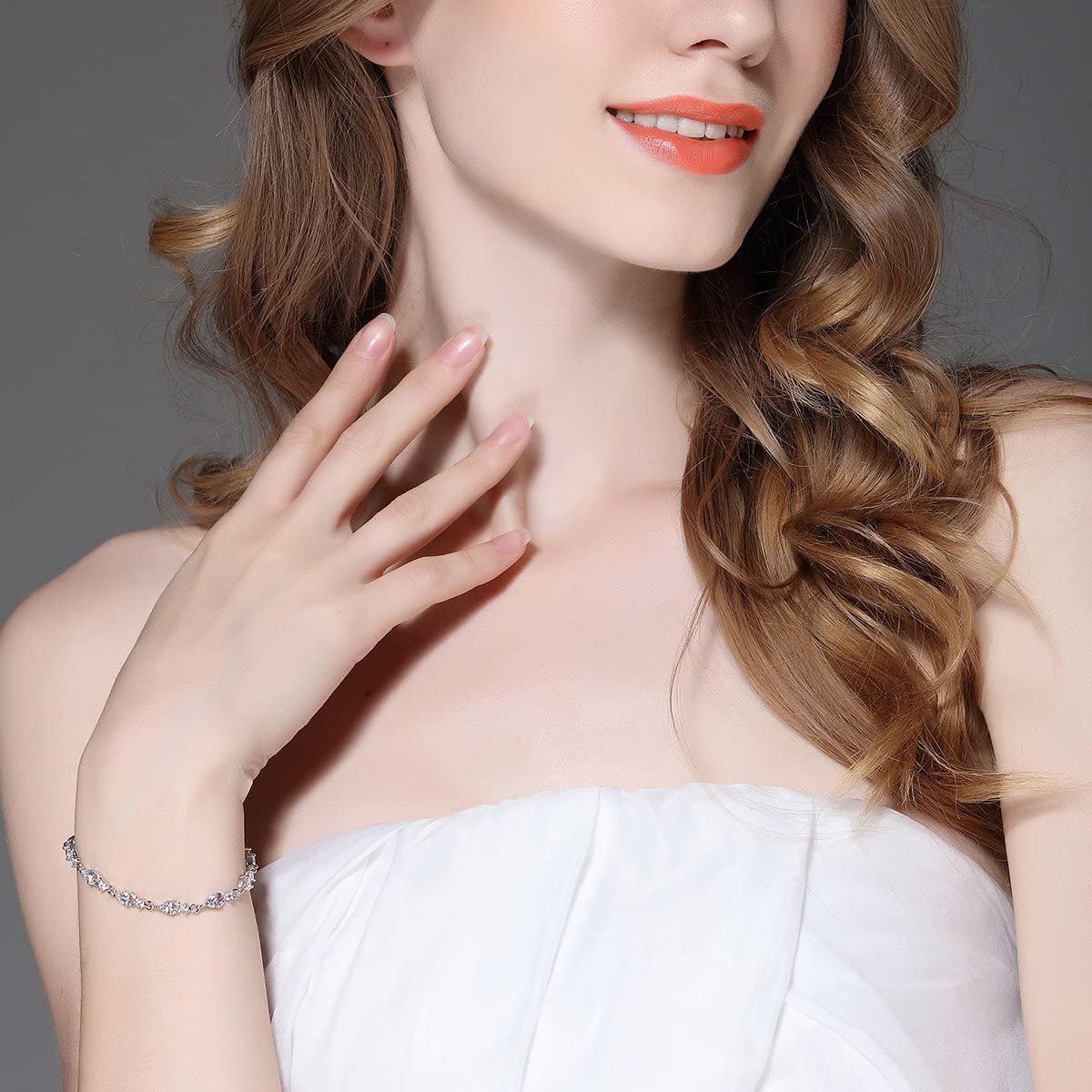 WOSTU White Gold Plated 3mm Cubic Zirconia Classic Tennis Wedding Bridal Bracelet | Cubic Zirconia | Women's White Gold Bracelet | Sizes 6.5-8 Inches
