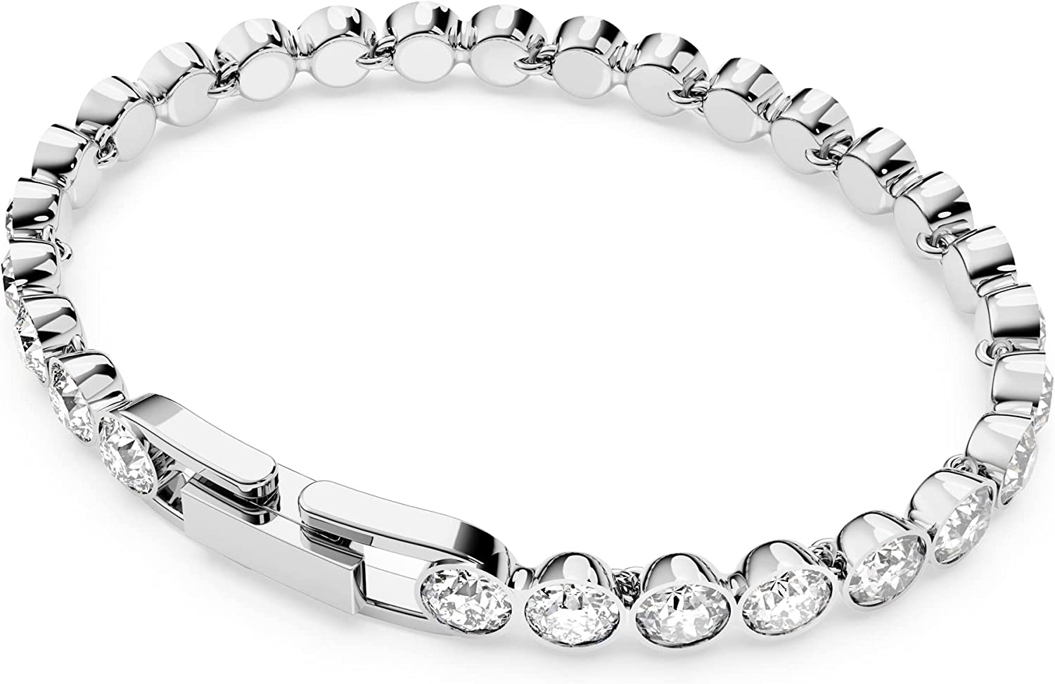 Swarovski Tennis Bracelet and Earrings Jewelry Collection, Rhodium Finish, Clear Crystals