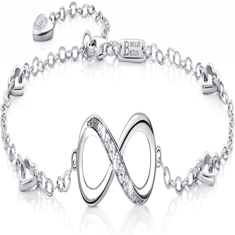 Billie Bijoux Women's 925 Sterling Silver Infinity Anklet Bracelet Endless Love Symbol Charm Adjustable Large Bracelet Women's Mother's Day Gift $152.0 |