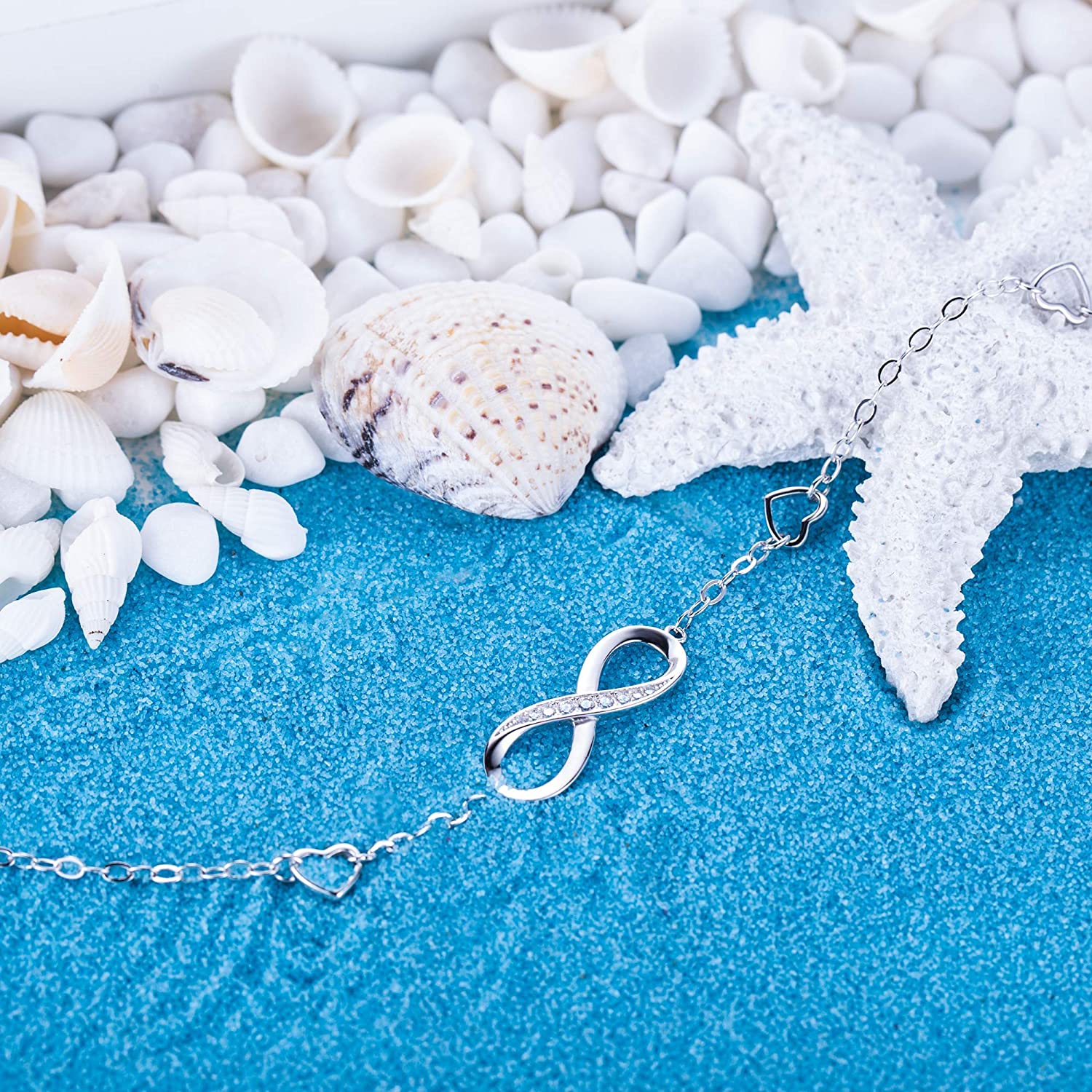 Billie Bijoux Women's 925 Sterling Silver Infinity Anklet Bracelet Endless Love Symbol Charm Adjustable Large Bracelet Women's Mother's Day Gift