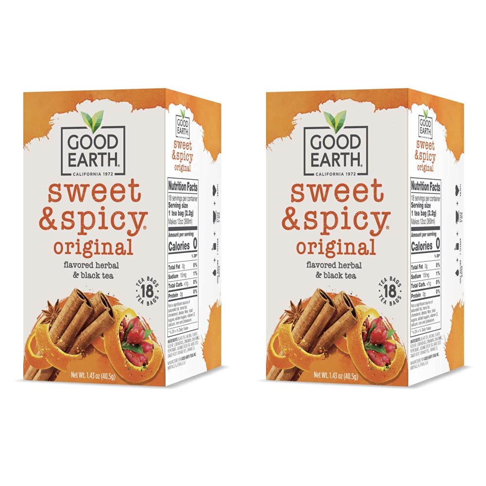 Good Earth Herbal Black Tea, Sweet & Spicy, 18 Count (Pack of 6) (Packaging may vary) $31.0 |