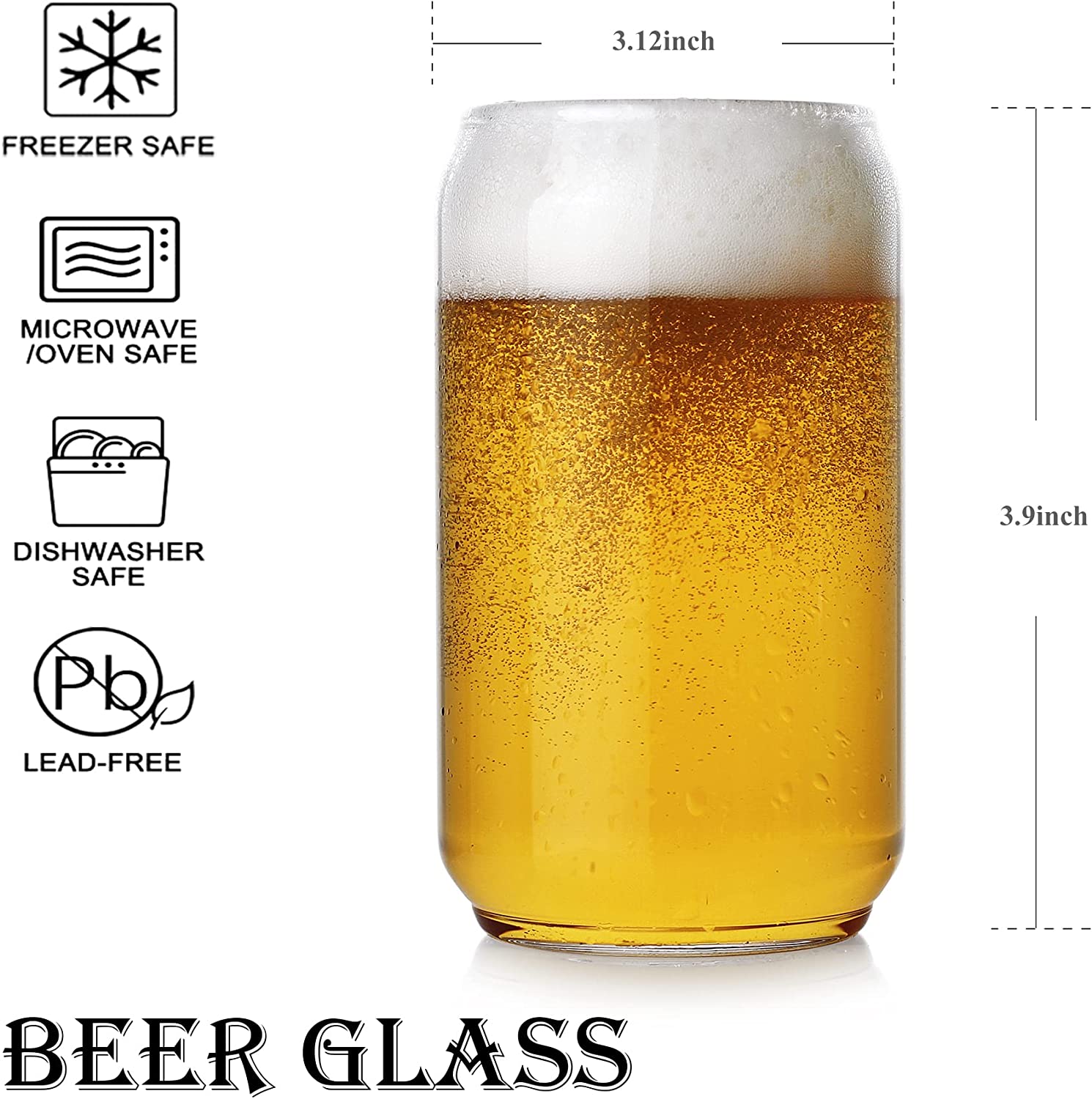 Large Beer Mugs, 20 Ounce Canned Beer Mugs Set of 4, Elegantly Shaped Mugs Make Ideal Gifts, Non-Tipping Beer Mugs are Great for Any Drink and Any Occasion