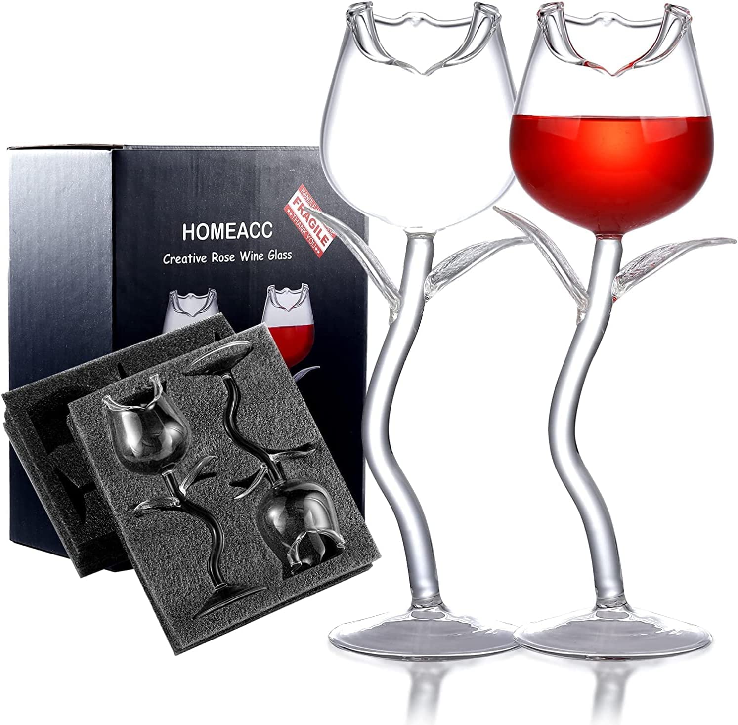 PolSurdy Rosette Wine Glasses, Women's Creative Red Wine Glasses Set of 2, Tall Wine Cocktail Juice Glasses for Housewarming, Weddings, and Kitchen Bar Celebrations (6 oz., 2 pcs.)