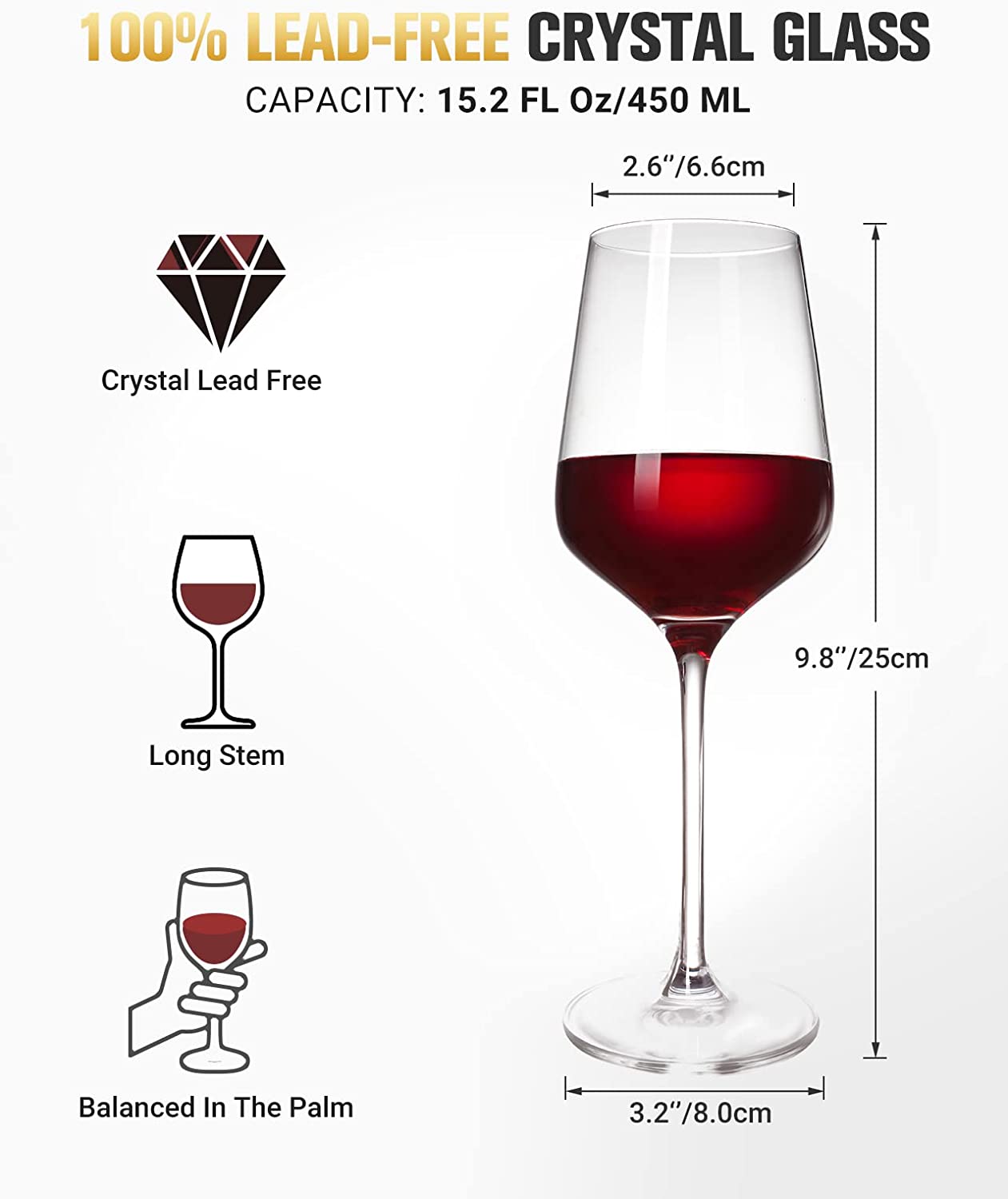 Maxboro Red Wine Glasses Set of 2, Hand Blown Lead-Free Burgundy Wine Glasses, Long Stemmed Wine Glasses for Wine Tasting, 15.2 oz $41.0 |
