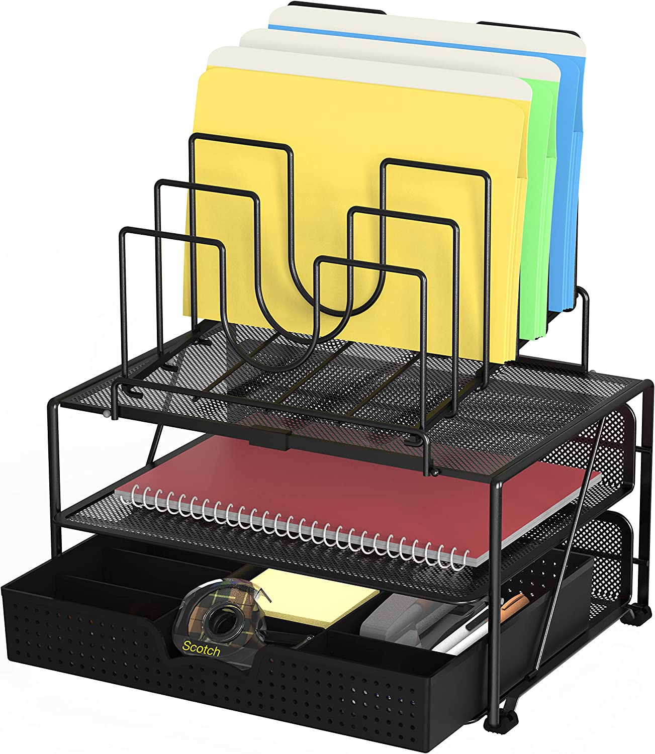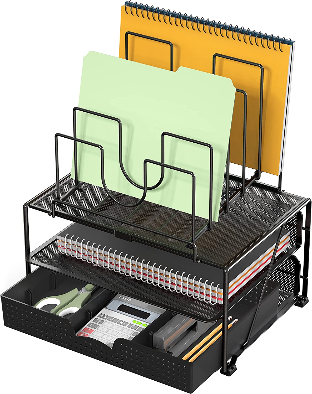 DecoBros Mesh Desk Organizer with Dual Trays, 5 Stacking Sorter Sections and Sliding Drawer, Black $156.0 |