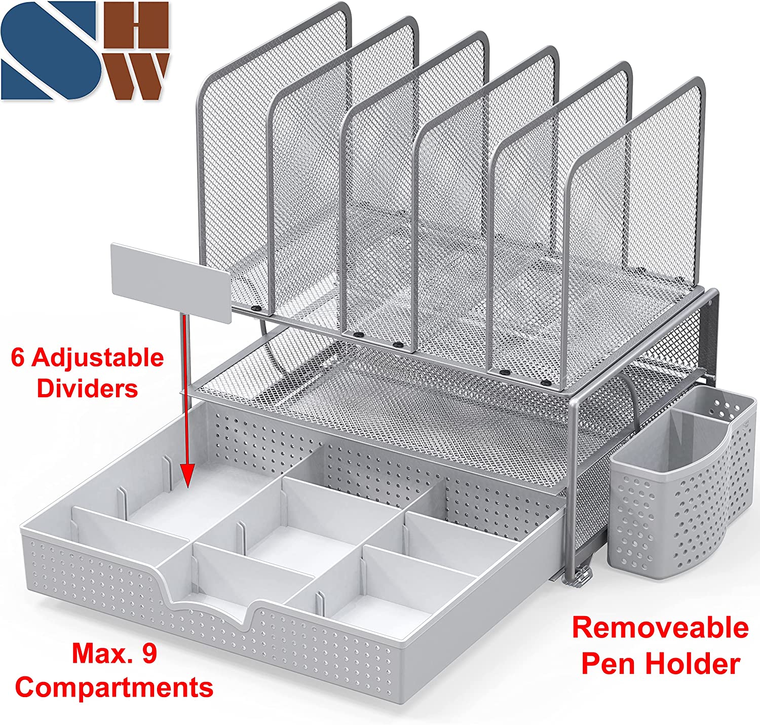 SimpleHouseware Mesh Desk Organizer with Sliding Drawer, Dual Trays, and 5 Upright Sections, Black $250.0 |