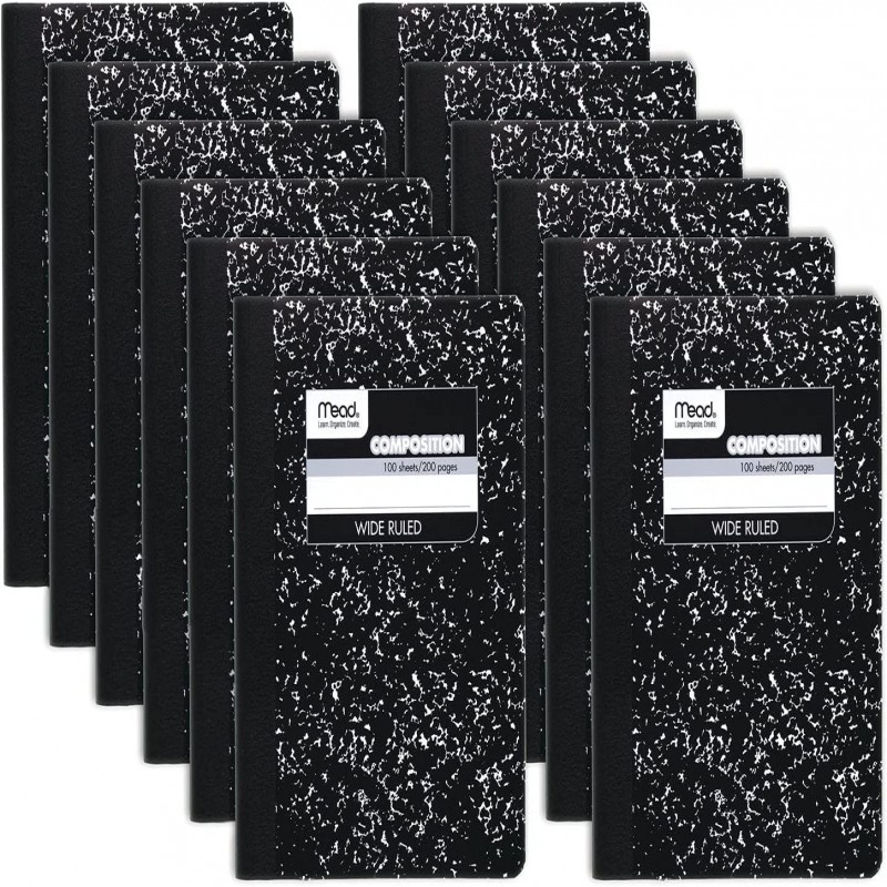 Mead Composition Notebooks, 12-Pack, Wide Grid Paper, 9-3/4 x 7-1/2, 100 Sheets Per Notebook, Black Marbled, 12-Pack $230.0 |