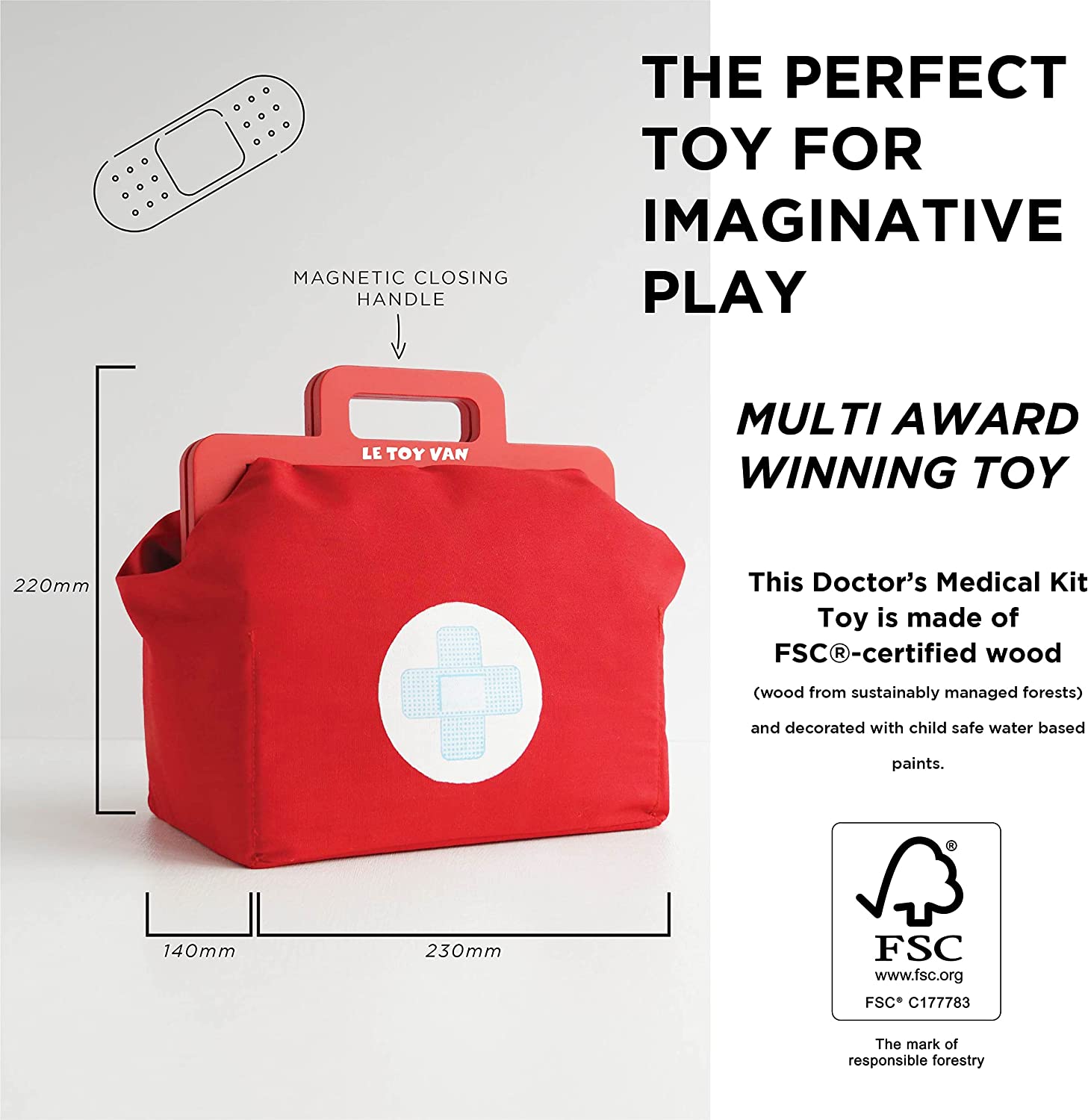 Le Toy Van - Children's Wooden Educational Role-Play Dr. Honeybake's Medical Playset | Kids Pretend Play Role-Play for Boys and Girls | Ages 3+, 8.66 x 5.70 x 5.90 (TV292)