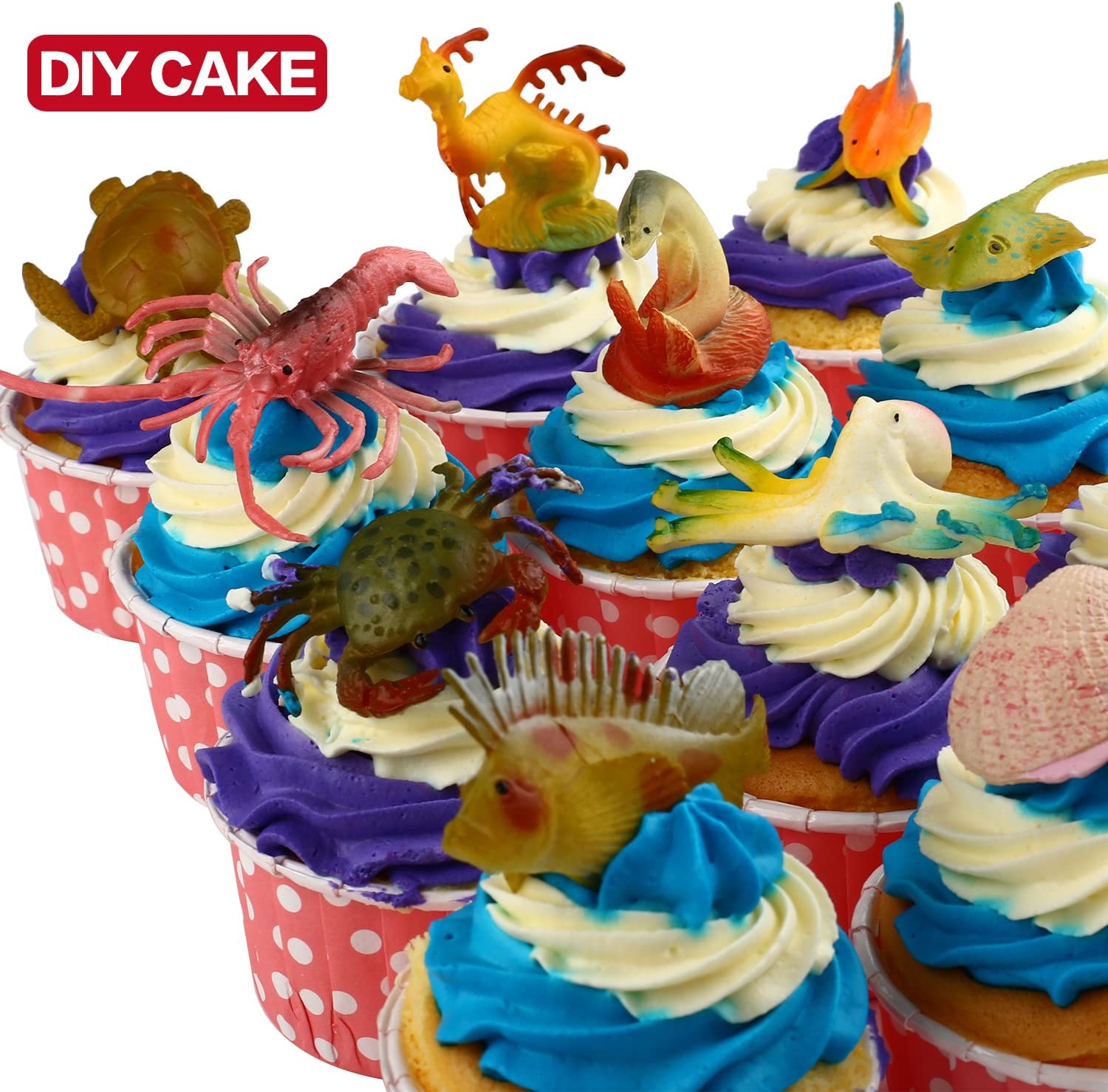 Ocean Ocean Animals, 52 Piece Assorted Mini Vinyl Plastic Animal Playset, Realistic Undersea Creatures Figurine Bath Toys for Kids Educational Party Cake Cupcake Gift Caps, Valentine's Day Gift