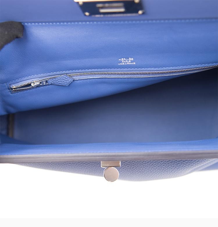 HERMES/HERMÈS Ladies Blue Cowhide Metallic Silver Buckle Handbag Tote Handbag Clutch Women's Bag 242435CMAATG - Teem $1196.0 |