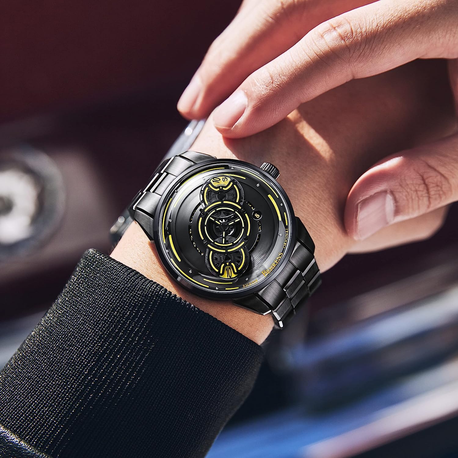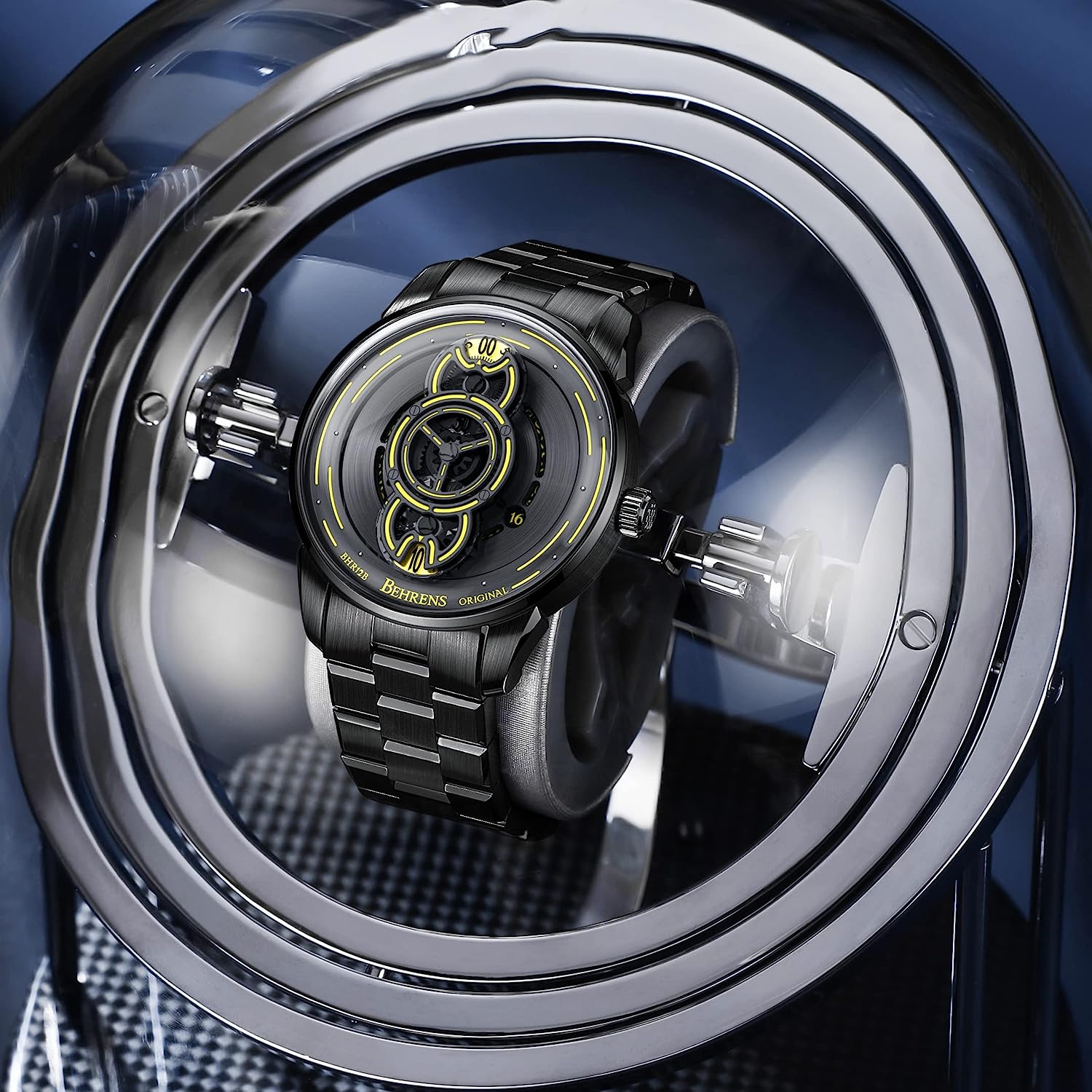 Behrens Men's Watch Original Unique Design Automatic Watch Swiss GPHG 2020 Skeletonized Sapphire Steampunk