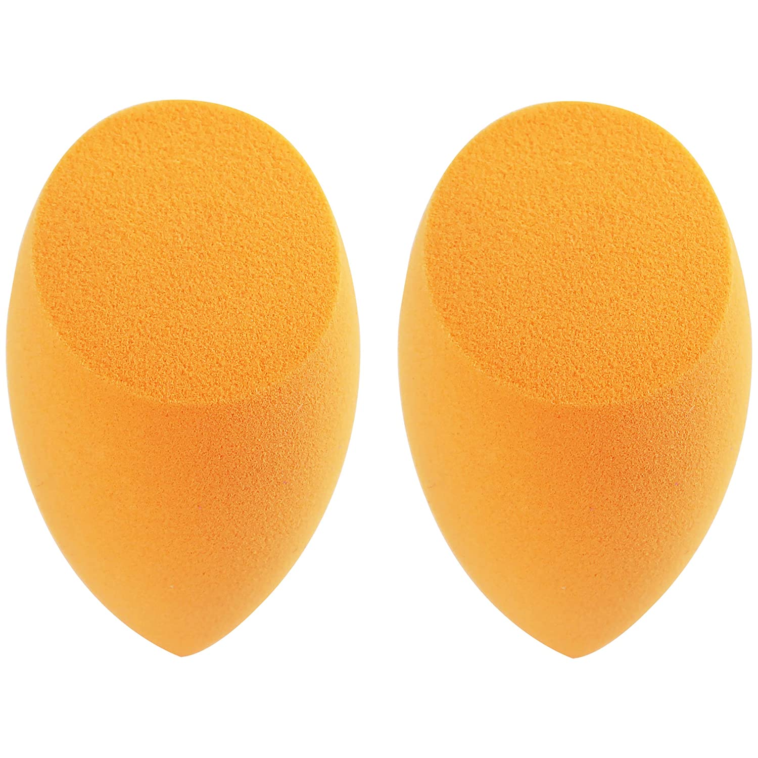 Real Techniques Miracle Complexion Sponge Duo, Makeup Blending Sponge for Foundation, Provides Light to Medium Coverage for a Natural, Hydrated Look, Orange Sponge, Latex-Free Foam, 2 Pieces