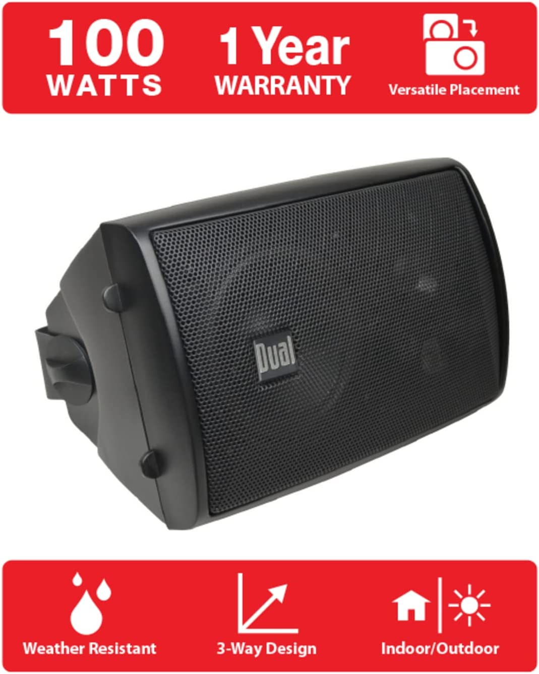 Dual Electronics LU43PB 3-Way High-Performance Outdoor Indoor Loudspeaker with Powerful Bass |Easy-to-Mount Swivel Bracket |Weather Resistant |Wide Stereo Coverage |Sold in Pairs, Black