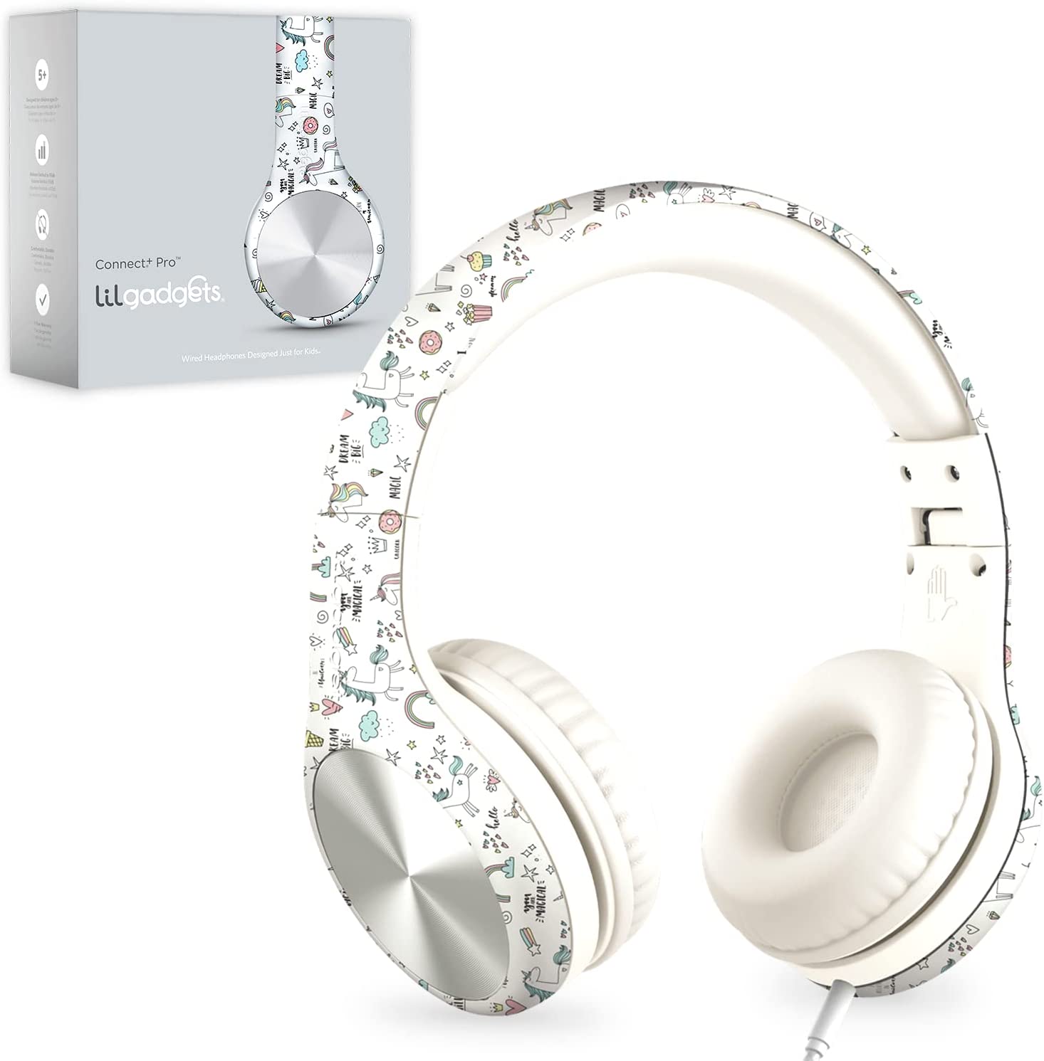 LilGadgets Connect+ Pro Corded Kids Headphones - Designed for Kids; Comfort in Mind, Kid-Friendly Foldable Over-Ear Headphones with Built-In Microphone, Great for Toddlers, Purple